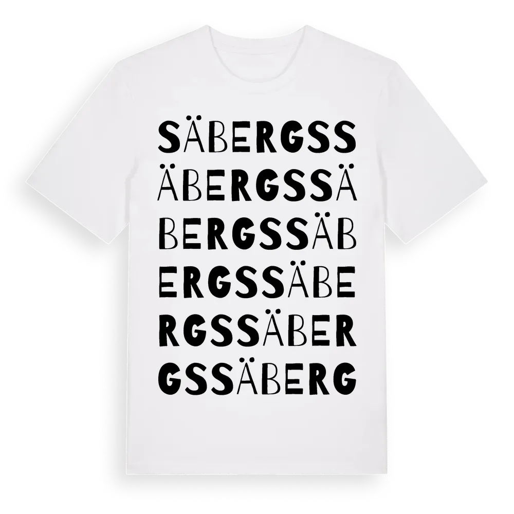 Säbergs ordlek t-shirt är inspirerad av Säbergs i Stockholms län, Sverige. Tröjan är designad för dig som har en speciell koppling till platsen – oavsett om du bor här, har rötterna här eller bara älskar Säbergs.