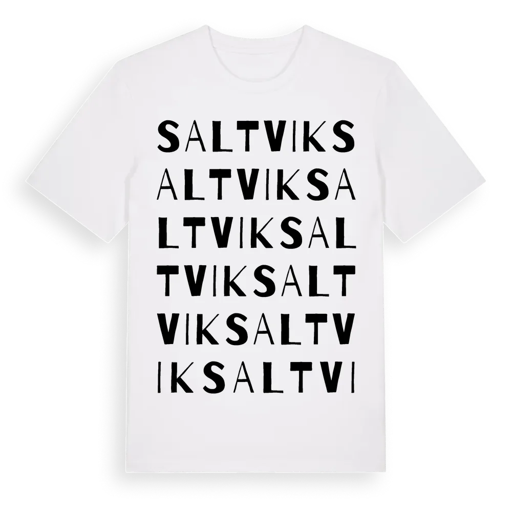 Saltvik ordlek t-shirt är inspirerad av Saltvik i Stockholms län, Sverige. Tröjan är designad för dig som har en speciell koppling till platsen – oavsett om du bor här, har rötterna här eller bara älskar Saltvik.