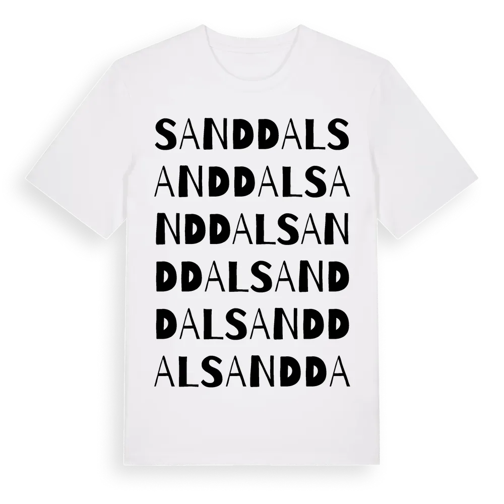Sanddal ordlek t-shirt är inspirerad av Sanddal i Stockholms län, Sverige. Tröjan är designad för dig som har en speciell koppling till platsen – oavsett om du bor här, har rötterna här eller bara älskar Sanddal.