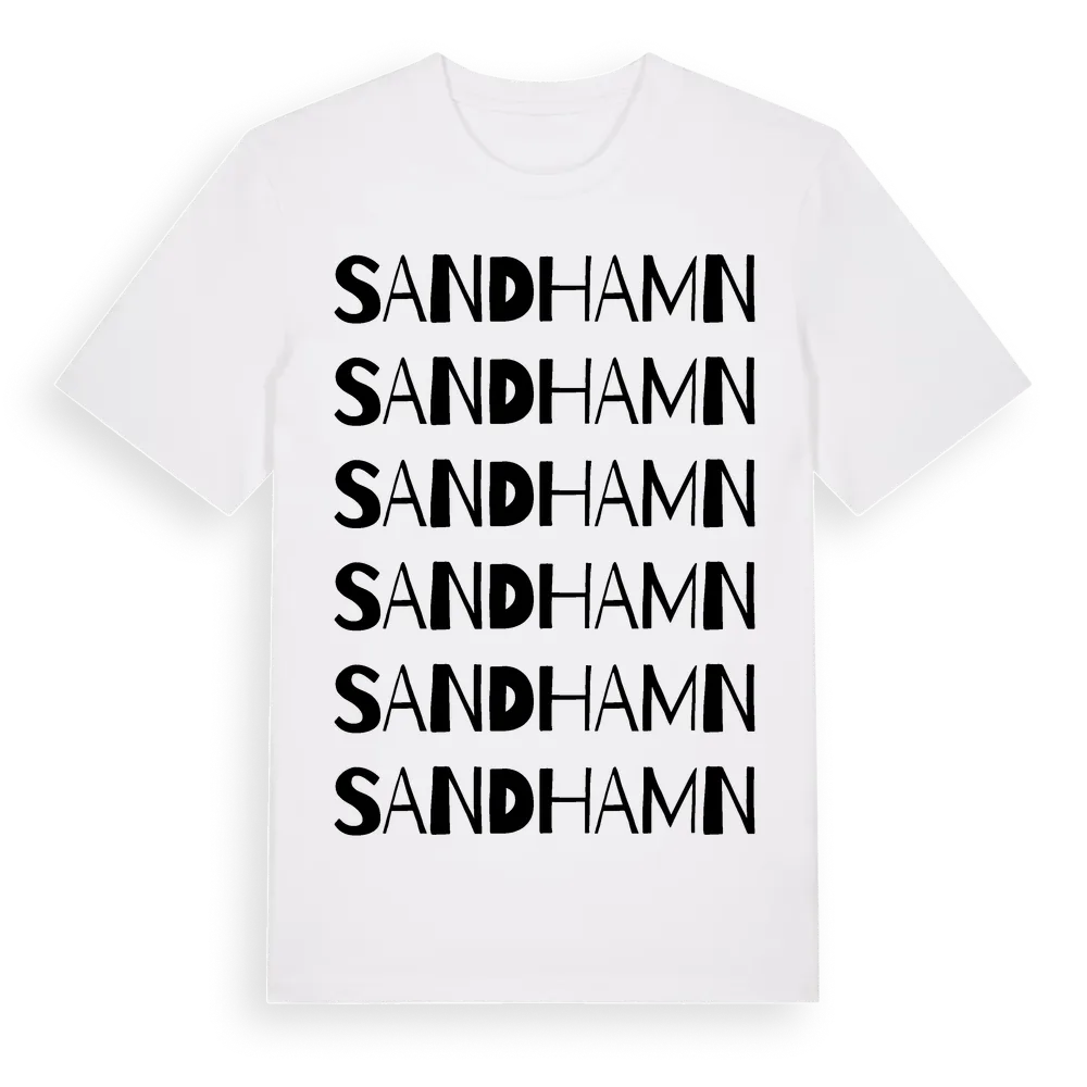 En ordlek byggd på Sandhamns namn. Subtilt och klurig – ett motiv som bara de som verkligen känner platsen fullt ut förstår. Premium bomull, unisex – från Sandhamn i Stockholms län.