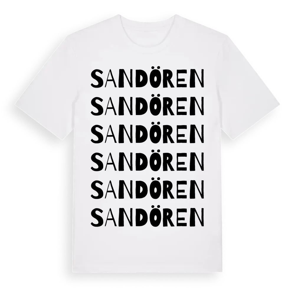 En ordlek byggd på Sandörens namn. Subtilt och klurig – ett motiv som bara de som verkligen känner platsen fullt ut förstår. Premium bomull, unisex – från Sandören i Stockholms län.