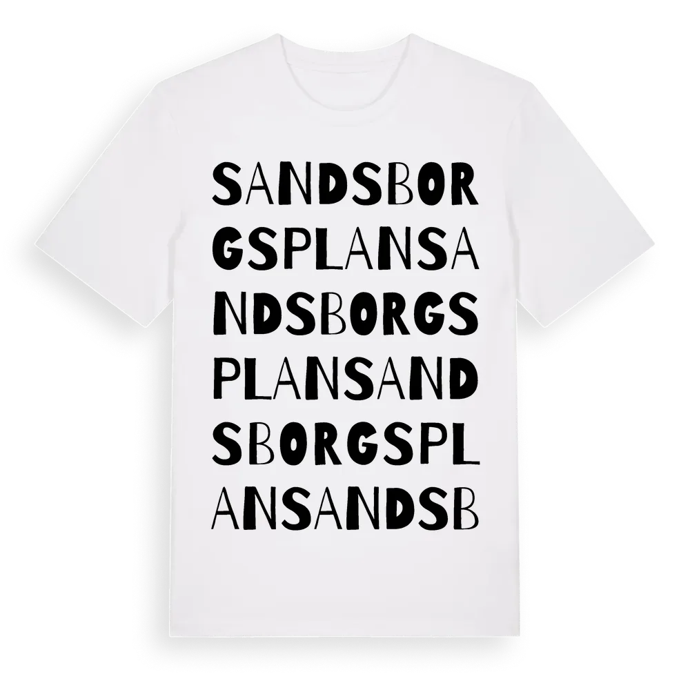 Sandsborgsplan ordlek t-shirt är inspirerad av Sandsborgsplan i Stockholms län, Sverige. Tröjan är designad för dig som har en speciell koppling till platsen – oavsett om du bor här, har rötterna här eller bara älskar Sandsborgsplan.
