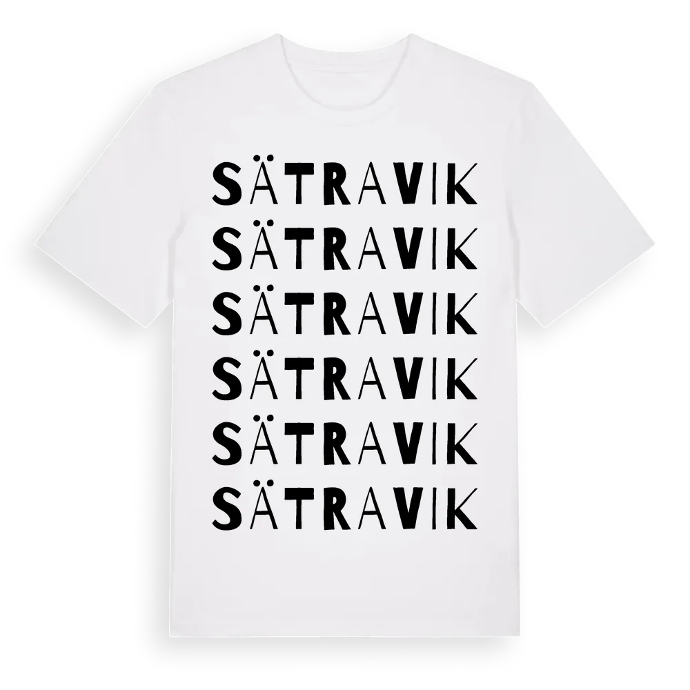 Sätravik ordlek t-shirt är inspirerad av Sätravik i Stockholms län, Sverige. Tröjan är designad för dig som har en speciell koppling till platsen – oavsett om du bor här, har rötterna här eller bara älskar Sätravik.