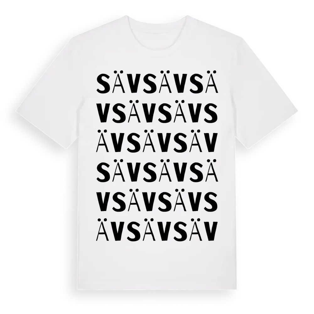 Säv ordlek t-shirt är inspirerad av Säv i Stockholms län, Sverige. Tröjan är designad för dig som har en speciell koppling till platsen – oavsett om du bor här, har rötterna här eller bara älskar Säv.
