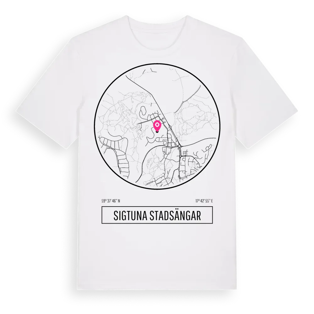 Sigtuna Stadsängar t-shirt är inspirerad av stadsdelen Sigtuna Stadsängar i Stockholms län, Sverige. Tröjan är designad för dig som har en speciell koppling till platsen – oavsett om du bor här, har rötterna här eller bara älskar Sigtuna Stadsängar.