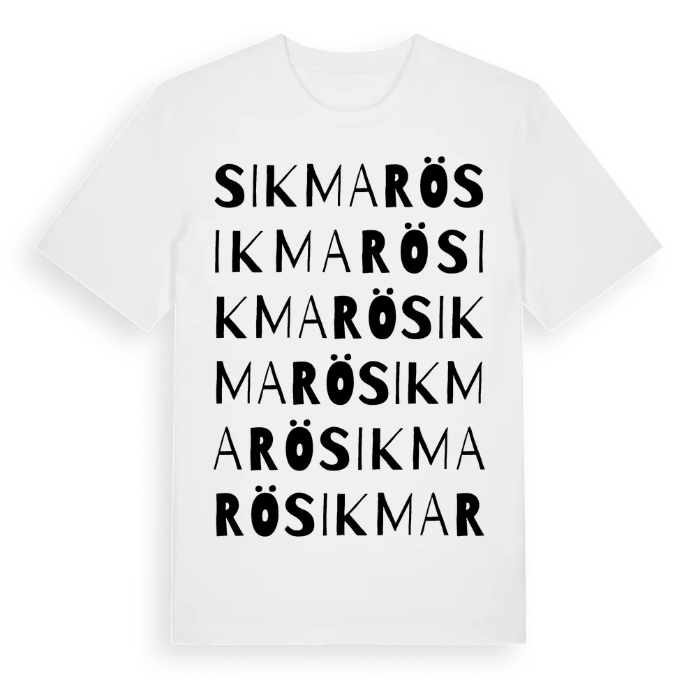 Sikmarö ordlek t-shirt är inspirerad av byn Sikmarö i Stockholms län, Sverige. Tröjan är designad för dig som har en speciell koppling till platsen – oavsett om du bor här, har rötterna här eller bara älskar Sikmarö.