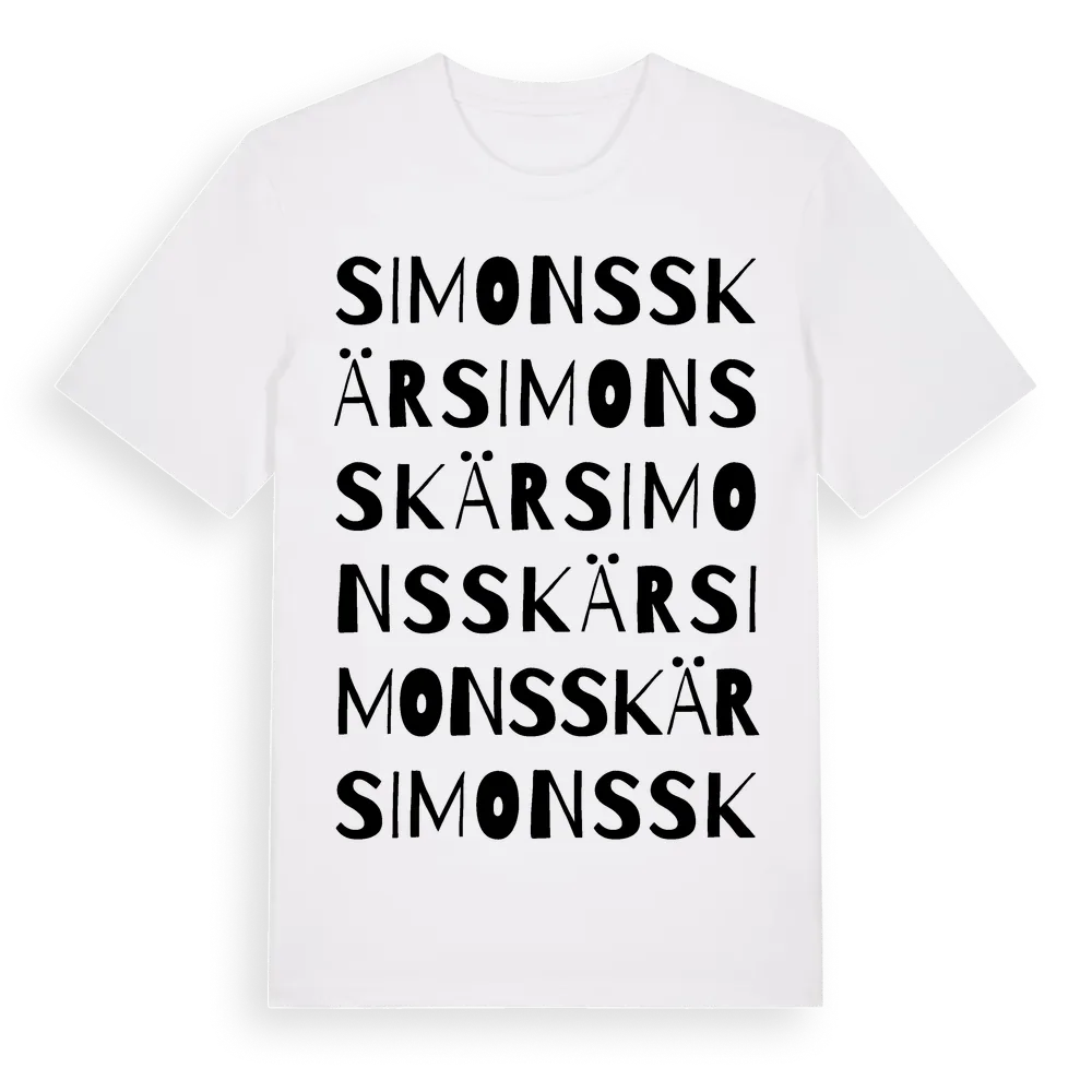 Simonsskär ordlek t-shirt är inspirerad av Simonsskär i Stockholms län, Sverige. Tröjan är designad för dig som har en speciell koppling till platsen – oavsett om du bor här, har rötterna här eller bara älskar Simonsskär.