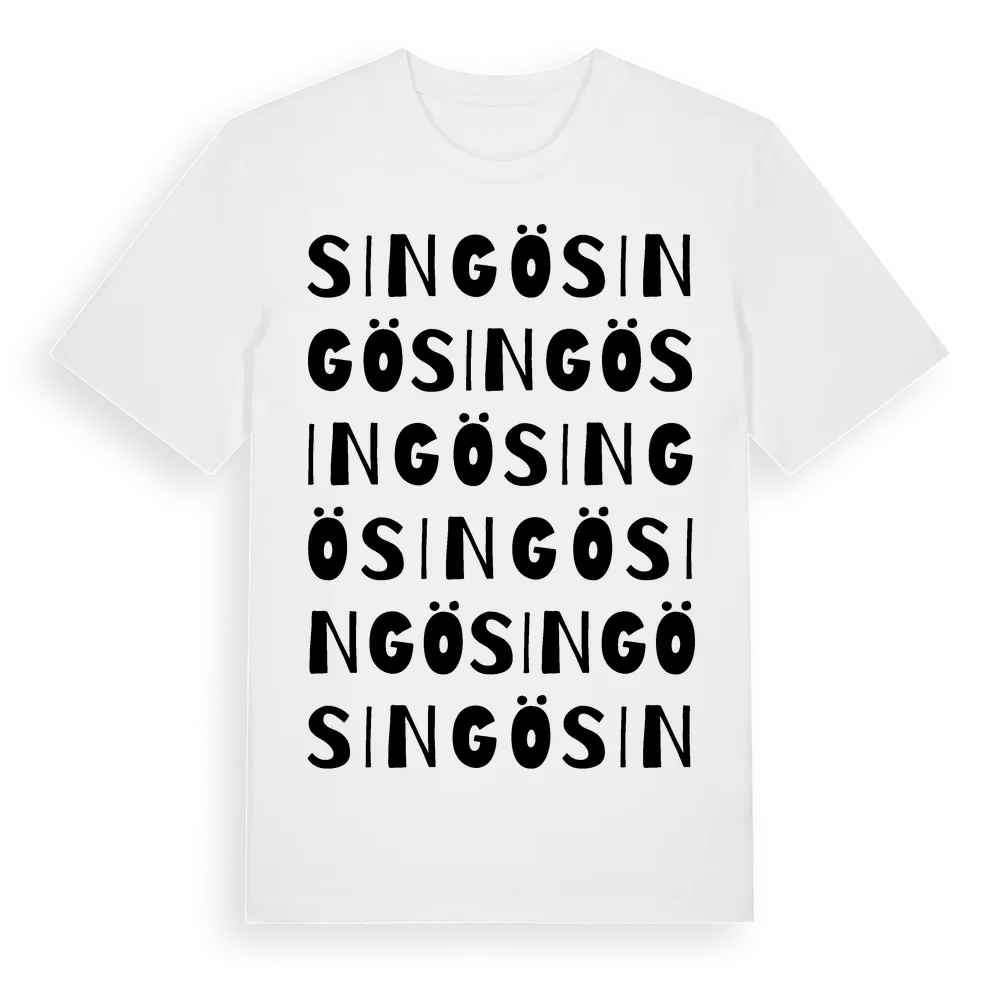 Singö ordlek t-shirt är inspirerad av byn Singö i Stockholms län, Sverige. Tröjan är designad för dig som har en speciell koppling till platsen – oavsett om du bor här, har rötterna här eller bara älskar Singö.