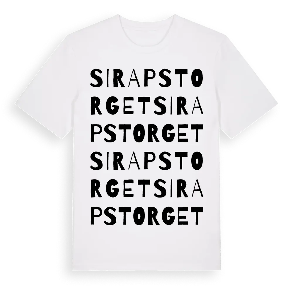 Sirapstorget ordlek t-shirt är inspirerad av Sirapstorget i Stockholms län, Sverige. Tröjan är designad för dig som har en speciell koppling till platsen – oavsett om du bor här, har rötterna här eller bara älskar Sirapstorget.