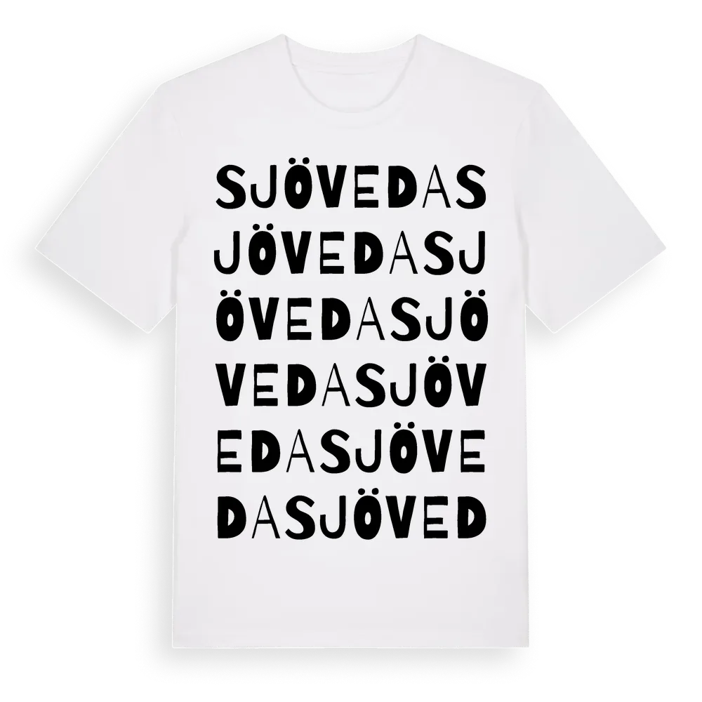Sjöveda ordlek t-shirt är inspirerad av Sjöveda i Stockholms län, Sverige. Tröjan är designad för dig som har en speciell koppling till platsen – oavsett om du bor här, har rötterna här eller bara älskar Sjöveda.