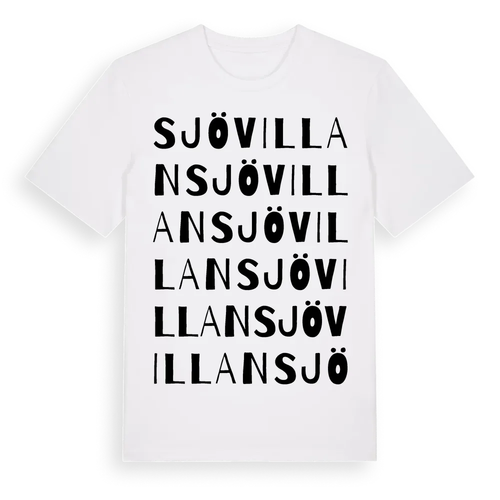 Sjövillan ordlek t-shirt är inspirerad av Sjövillan i Stockholms län, Sverige. Tröjan är designad för dig som har en speciell koppling till platsen – oavsett om du bor här, har rötterna här eller bara älskar Sjövillan.