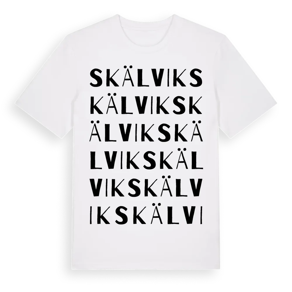 Skälvik ordlek t-shirt är inspirerad av byn Skälvik i Stockholms län, Sverige. Tröjan är designad för dig som har en speciell koppling till platsen – oavsett om du bor här, har rötterna här eller bara älskar Skälvik.