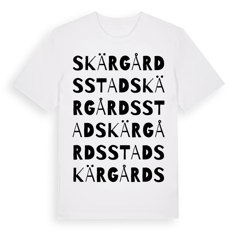 Skärgårdsstad ordlek t-shirt är inspirerad av byn Skärgårdsstad i Stockholms län, Sverige. Tröjan är designad för dig som har en speciell koppling till platsen – oavsett om du bor här, har rötterna här eller bara älskar Skärgårdsstad.