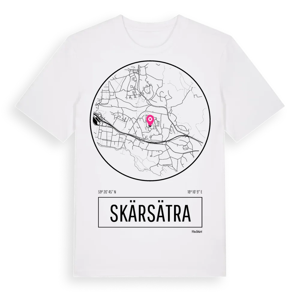 Skärsätra t-shirt är inspirerad av stadsdelen Skärsätra i Stockholms län, Sverige. Tröjan är designad för dig som har en speciell koppling till platsen – oavsett om du bor här, har rötterna här eller bara älskar Skärsätra.