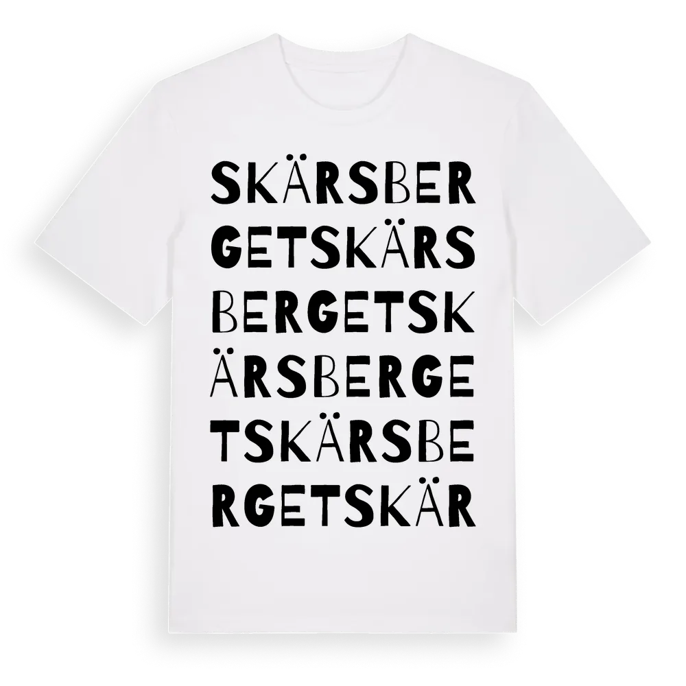 Skärsberget ordlek t-shirt är inspirerad av stadsdelen Skärsberget i Stockholms län, Sverige. Tröjan är designad för dig som har en speciell koppling till platsen – oavsett om du bor här, har rötterna här eller bara älskar Skärsberget.