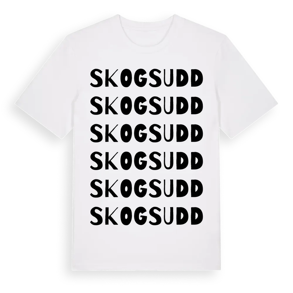 Skogsudd ordlek t-shirt är inspirerad av Skogsudd i Stockholms län, Sverige. Tröjan är designad för dig som har en speciell koppling till platsen – oavsett om du bor här, har rötterna här eller bara älskar Skogsudd.