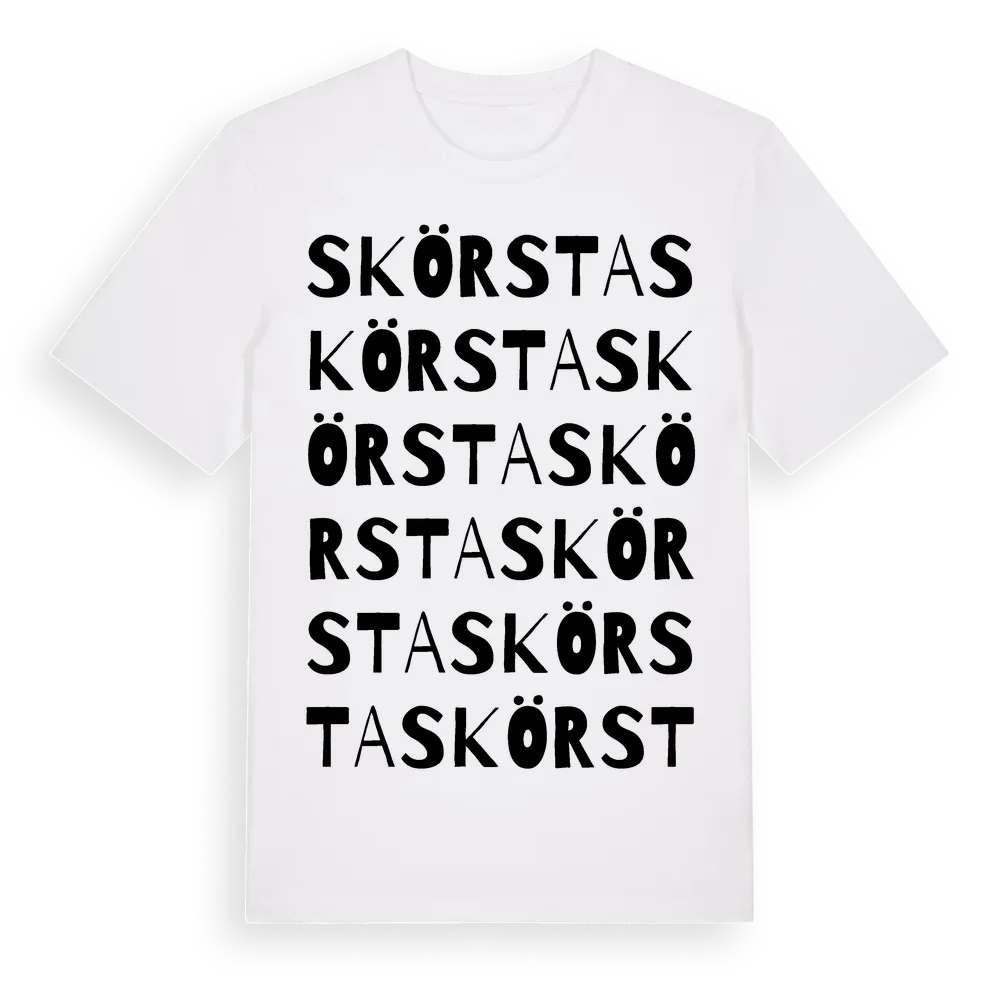 Skörsta ordlek t-shirt är inspirerad av Skörsta i Stockholms län, Sverige. Tröjan är designad för dig som har en speciell koppling till platsen – oavsett om du bor här, har rötterna här eller bara älskar Skörsta.