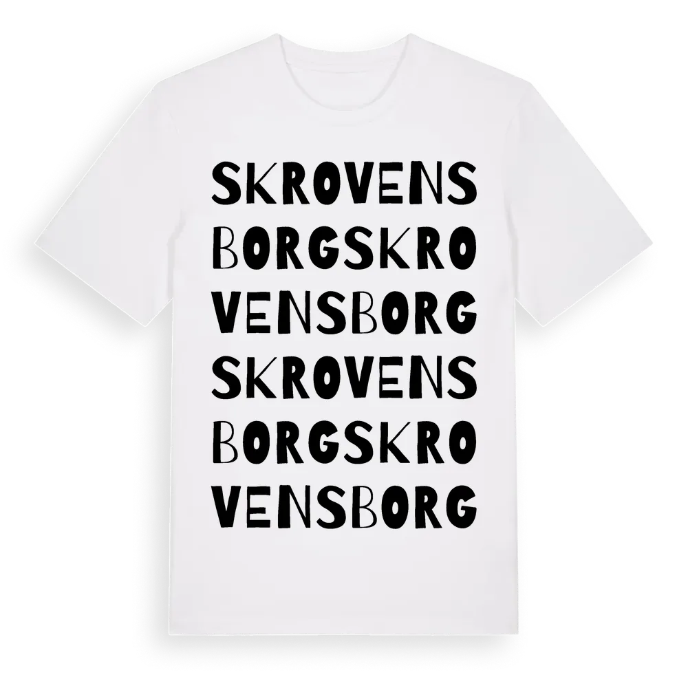 Skrovensborg ordlek t-shirt är inspirerad av Skrovensborg i Stockholms län, Sverige. Tröjan är designad för dig som har en speciell koppling till platsen – oavsett om du bor här, har rötterna här eller bara älskar Skrovensborg.