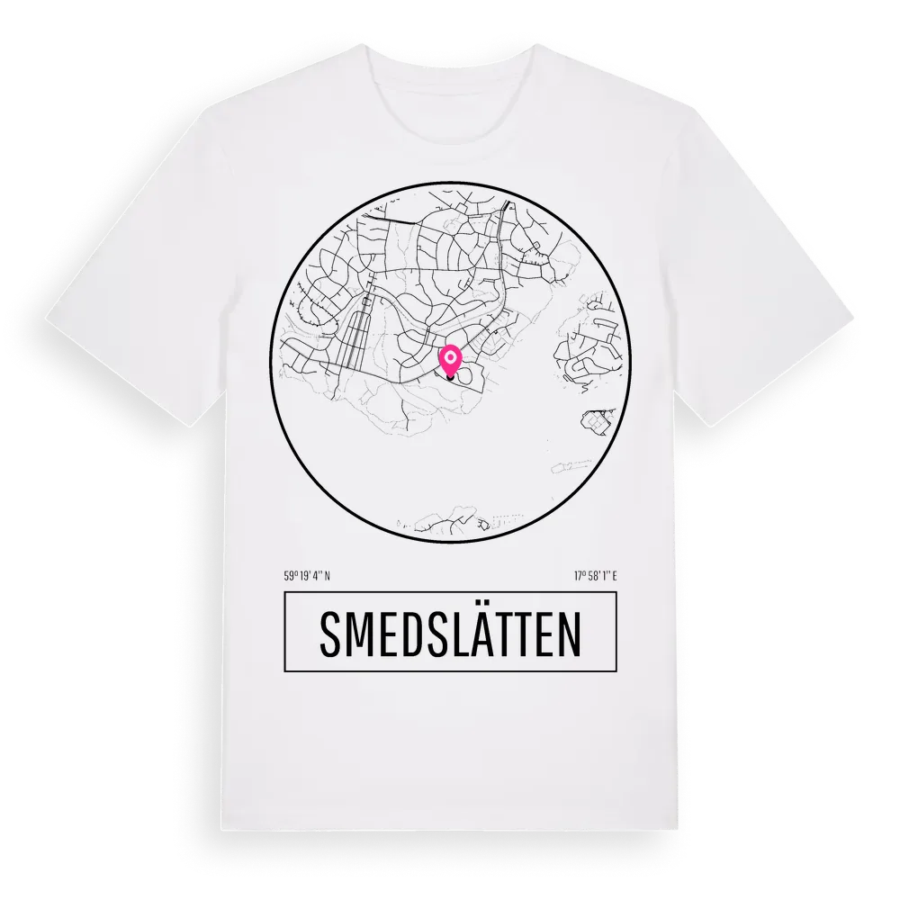 Smedslätten t-shirt är inspirerad av Smedslätten i Stockholms län, Sverige. Tröjan är designad för dig som har en speciell koppling till platsen – oavsett om du bor här, har rötterna här eller bara älskar Smedslätten.