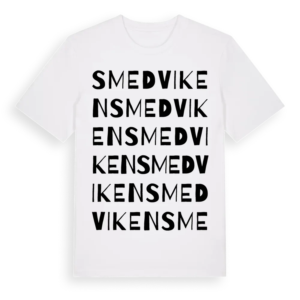 Smedviken ordlek t-shirt är inspirerad av Smedviken i Stockholms län, Sverige. Tröjan är designad för dig som har en speciell koppling till platsen – oavsett om du bor här, har rötterna här eller bara älskar Smedviken.