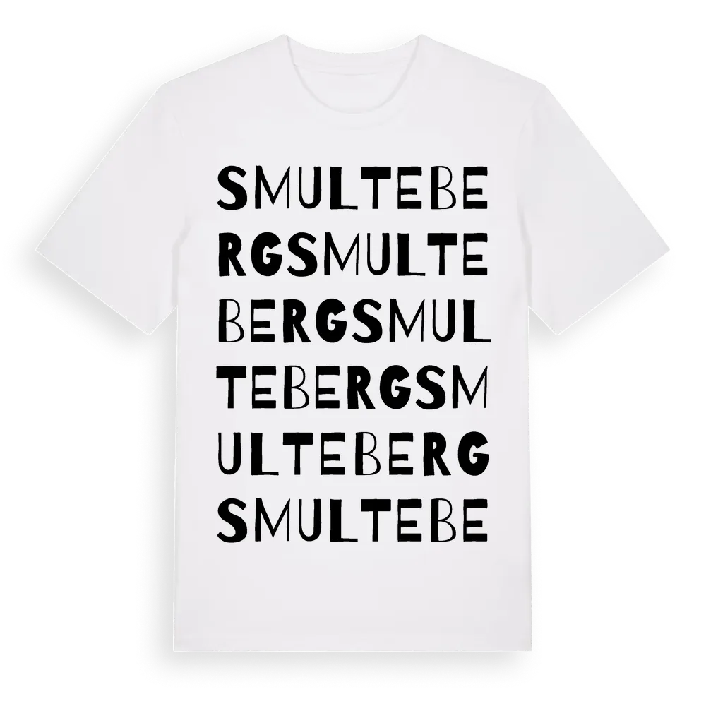 Smulteberg ordlek t-shirt är inspirerad av Smulteberg i Stockholms län, Sverige. Tröjan är designad för dig som har en speciell koppling till platsen – oavsett om du bor här, har rötterna här eller bara älskar Smulteberg.