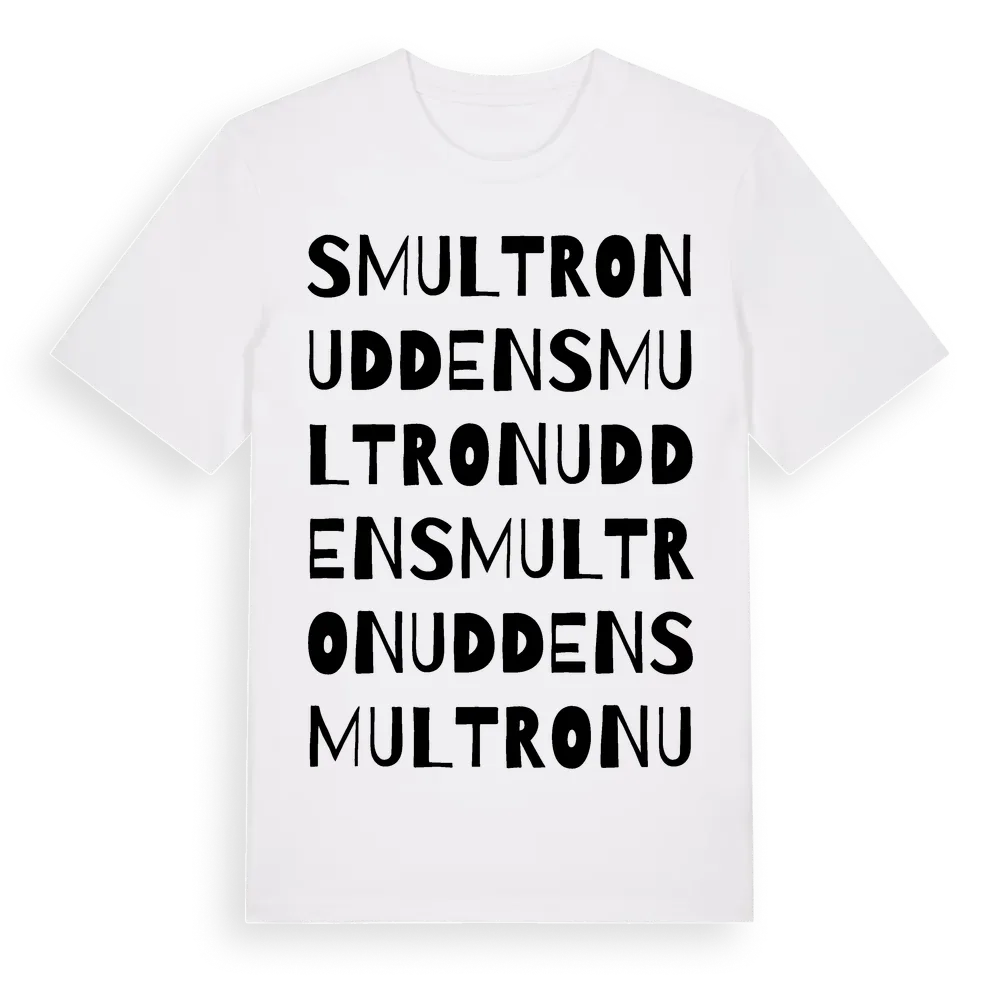 Smultronudden ordlek t-shirt är inspirerad av Smultronudden i Stockholms län, Sverige. Tröjan är designad för dig som har en speciell koppling till platsen – oavsett om du bor här, har rötterna här eller bara älskar Smultronudden.
