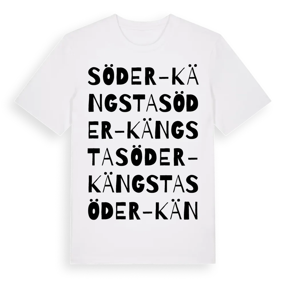 Söder-Kängsta ordlek t-shirt är inspirerad av Söder-Kängsta i Stockholms län, Sverige. Tröjan är designad för dig som har en speciell koppling till platsen – oavsett om du bor här, har rötterna här eller bara älskar Söder-Kängsta.