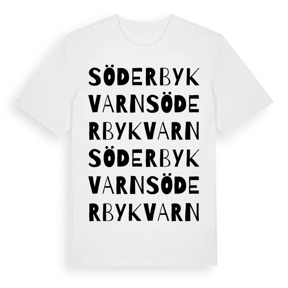 Söderby Kvarn ordlek t-shirt är inspirerad av Söderby Kvarn i Stockholms län, Sverige. Tröjan är designad för dig som har en speciell koppling till platsen – oavsett om du bor här, har rötterna här eller bara älskar Söderby Kvarn.