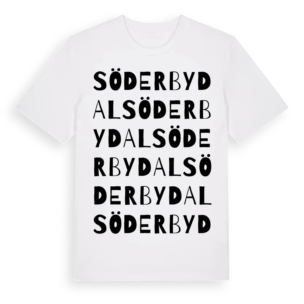 Söderbydal ordlek t-shirt är inspirerad av Söderbydal i Stockholms län, Sverige. Tröjan är designad för dig som har en speciell koppling till platsen – oavsett om du bor här, har rötterna här eller bara älskar Söderbydal.