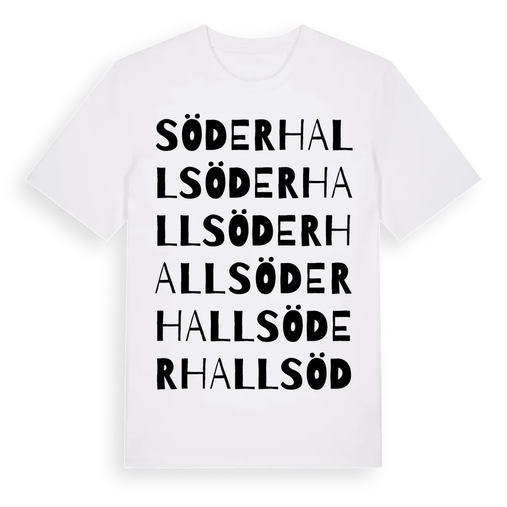 En ordlek byggd på Söderhalls namn. Subtilt och klurig – ett motiv som bara de som verkligen känner platsen fullt ut förstår. Premium bomull, unisex – från byn Söderhall i Stockholms län.