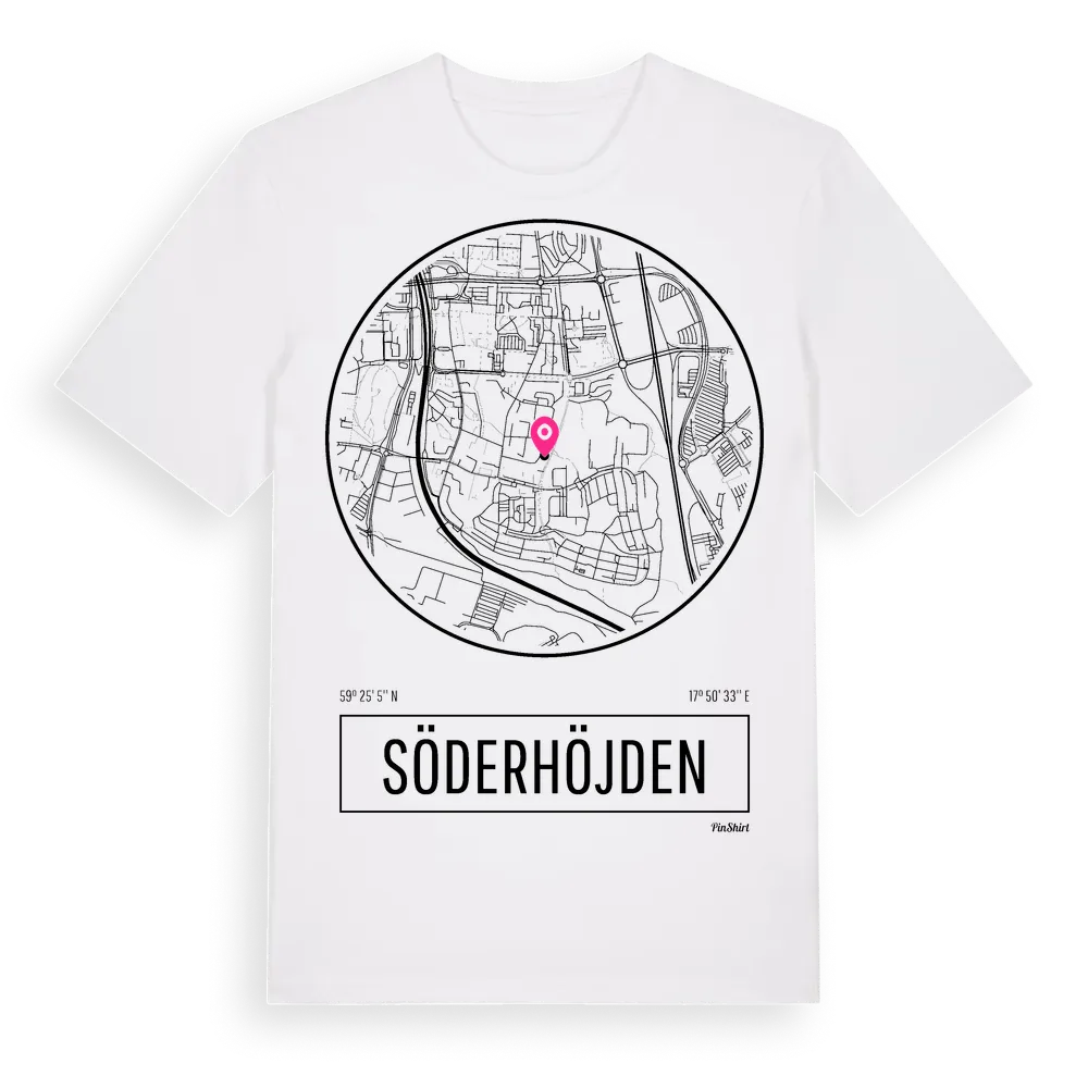 Ett rent, runt tryck med Söderhöjdens namn. Minimalistiskt och stilrent – perfekt för den som känner platsen utan att skrika det. Premium bomull, unisex – från stadsdelen Söderhöjden i Stockholms län.
