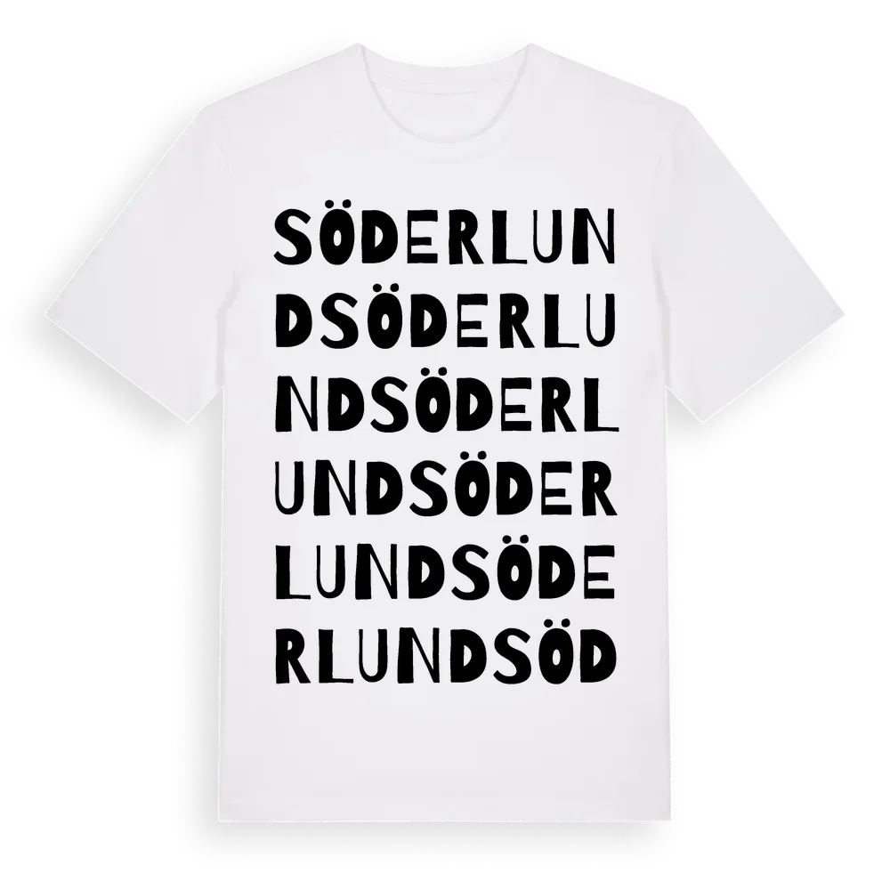 Söderlund ordlek t-shirt är inspirerad av Söderlund i Stockholms län, Sverige. Tröjan är designad för dig som har en speciell koppling till platsen – oavsett om du bor här, har rötterna här eller bara älskar Söderlund.