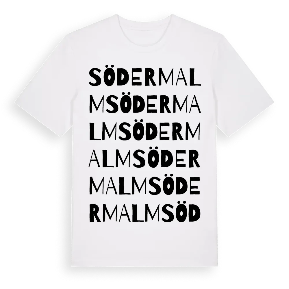 Södermalm ordlek t-shirt är inspirerad av Södermalm i Stockholms län, Sverige. Tröjan är designad för dig som har en speciell koppling till platsen – oavsett om du bor här, har rötterna här eller bara älskar Södermalm.
