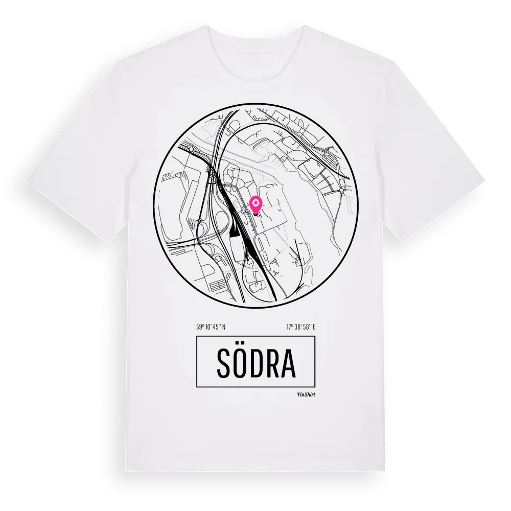Södra t-shirt är inspirerad av stadsdelen Södra i Stockholms län, Sverige. Tröjan är designad för dig som har en speciell koppling till platsen – oavsett om du bor här, har rötterna här eller bara älskar Södra.