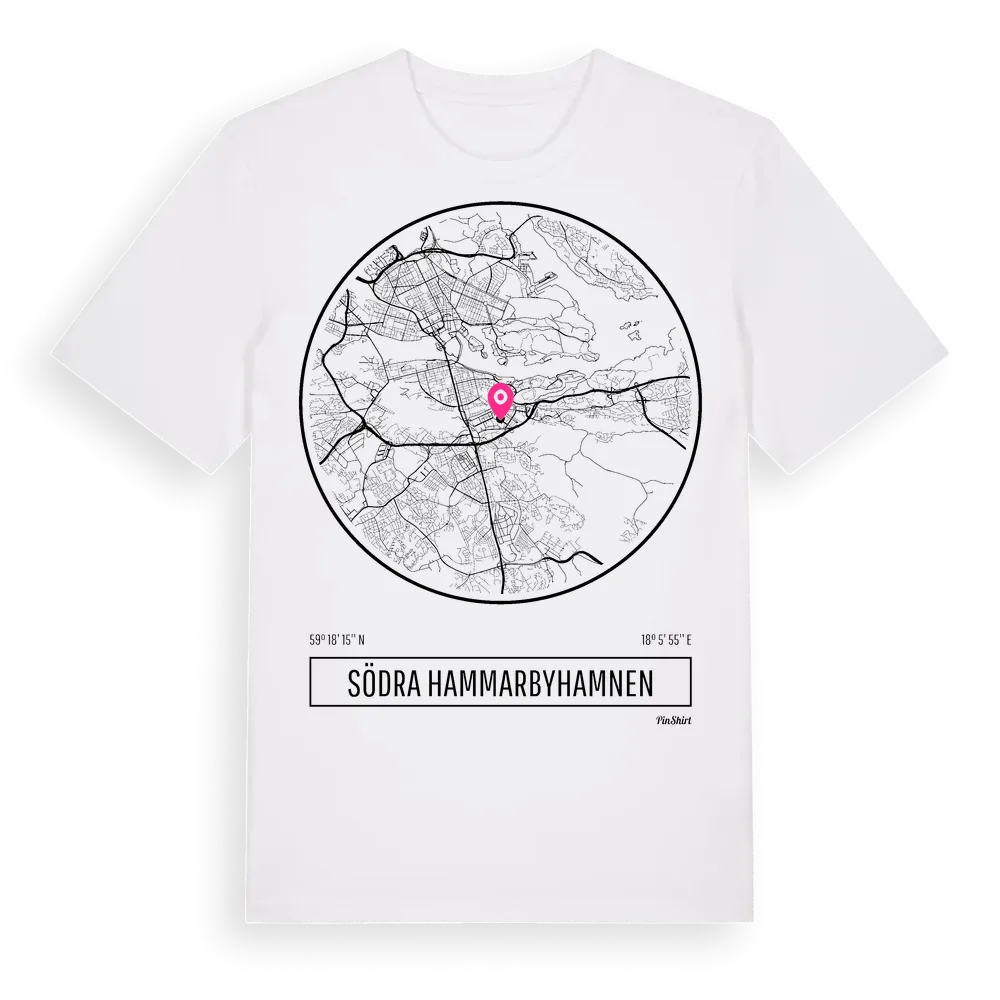 Södra Hammarbyhamnen t-shirt är inspirerad av stadsdelen Södra Hammarbyhamnen i Stockholms län, Sverige. Tröjan är designad för dig som har en speciell koppling till platsen – oavsett om du bor här, har rötterna här eller bara älskar Södra Hammarbyhamnen.