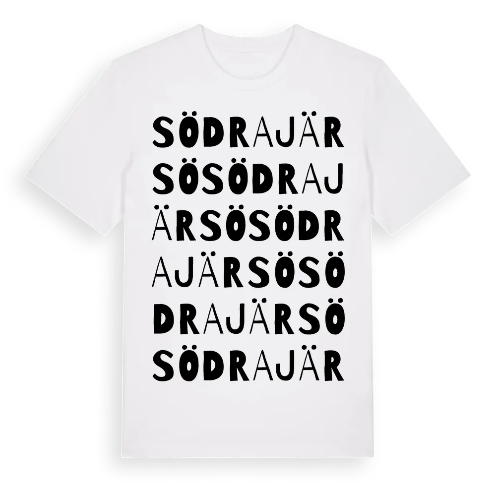 Södra Järsö ordlek t-shirt är inspirerad av Södra Järsö i Stockholms län, Sverige. Tröjan är designad för dig som har en speciell koppling till platsen – oavsett om du bor här, har rötterna här eller bara älskar Södra Järsö.