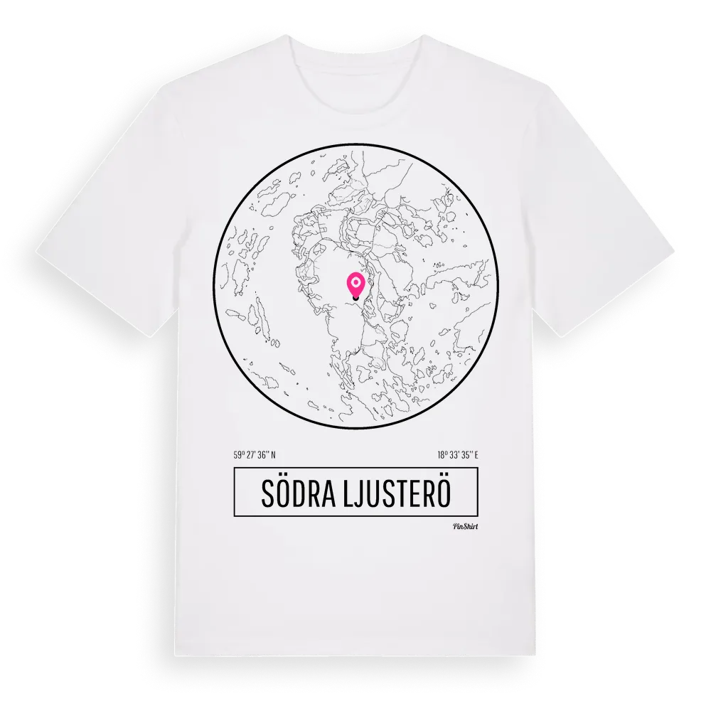 Södra Ljusterö t-shirt är inspirerad av ön Södra Ljusterö i Stockholms län, Sverige. Tröjan är designad för dig som har en speciell koppling till platsen – oavsett om du bor här, har rötterna här eller bara älskar Södra Ljusterö.