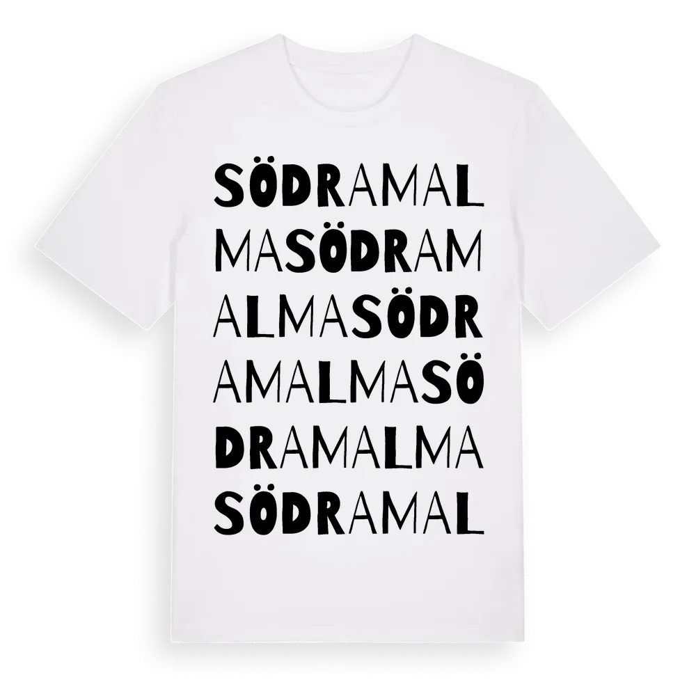 Södra Malma ordlek t-shirt är inspirerad av Södra Malma i Stockholms län, Sverige. Tröjan är designad för dig som har en speciell koppling till platsen – oavsett om du bor här, har rötterna här eller bara älskar Södra Malma.