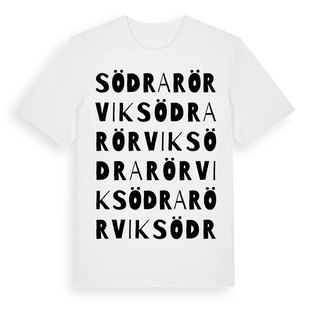 Södra Rörvik ordlek t-shirt är inspirerad av byn Södra Rörvik i Stockholms län, Sverige. Tröjan är designad för dig som har en speciell koppling till platsen – oavsett om du bor här, har rötterna här eller bara älskar Södra Rörvik.