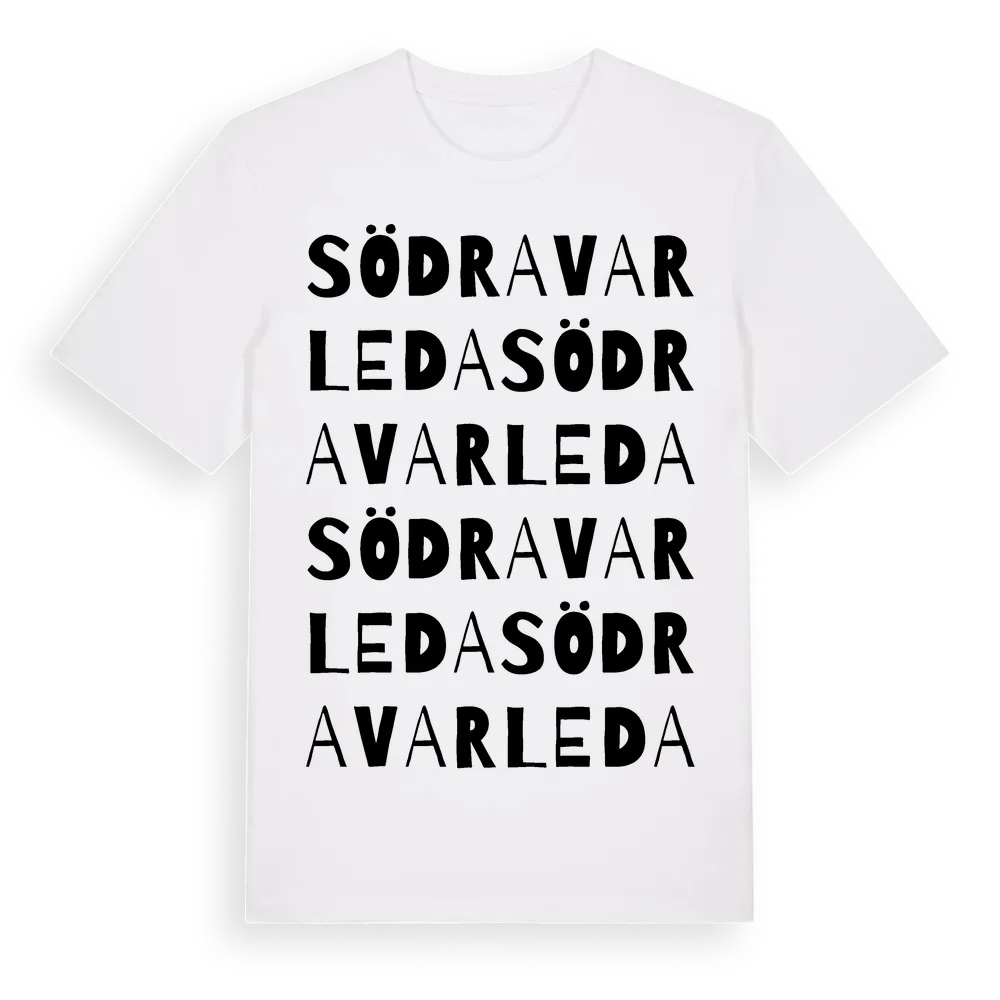Södra Varleda ordlek t-shirt är inspirerad av Södra Varleda i Stockholms län, Sverige. Tröjan är designad för dig som har en speciell koppling till platsen – oavsett om du bor här, har rötterna här eller bara älskar Södra Varleda.