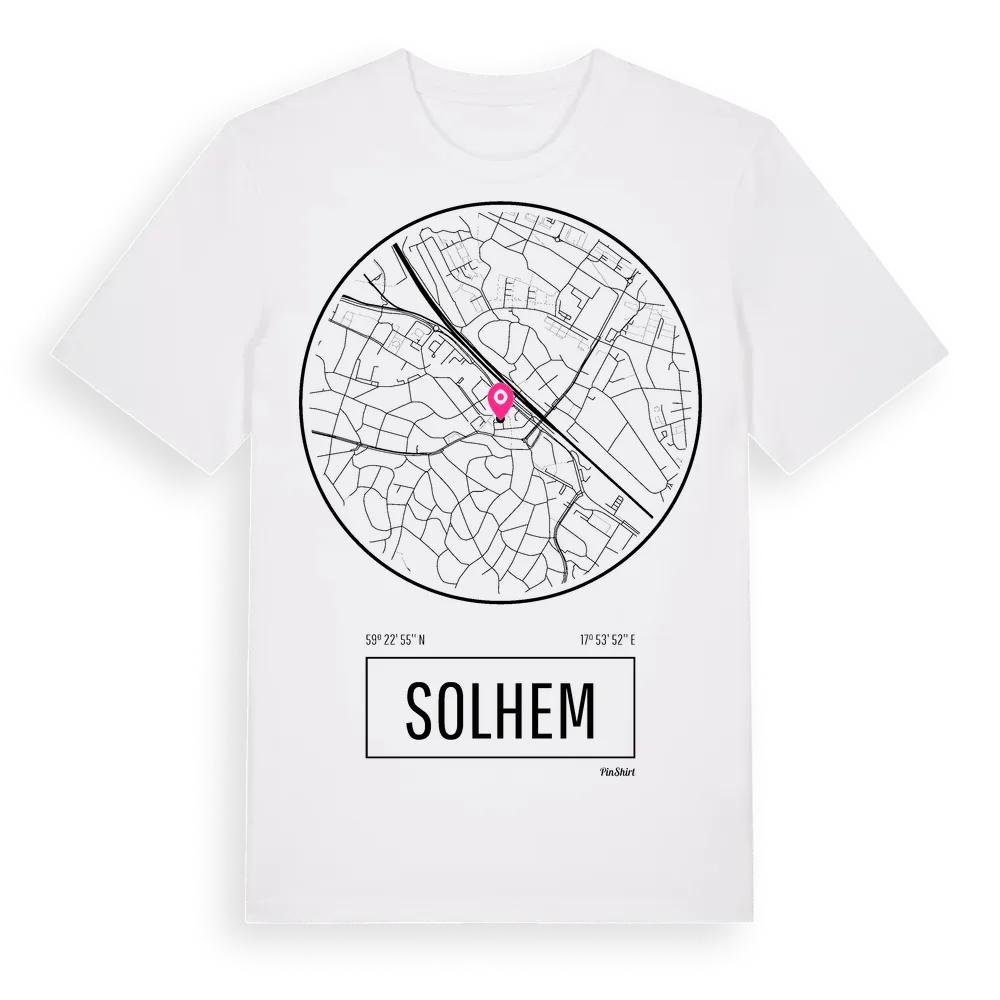 Solhem t-shirt är inspirerad av stadsdelen Solhem i Stockholms län, Sverige. Tröjan är designad för dig som har en speciell koppling till platsen – oavsett om du bor här, har rötterna här eller bara älskar Solhem.