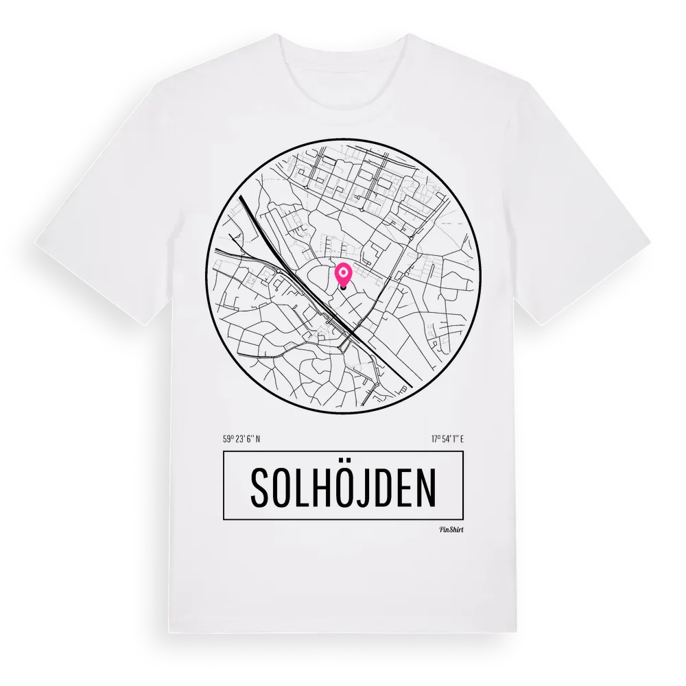Solhöjden t-shirt är inspirerad av stadsdelen Solhöjden i Stockholms län, Sverige. Tröjan är designad för dig som har en speciell koppling till platsen – oavsett om du bor här, har rötterna här eller bara älskar Solhöjden.