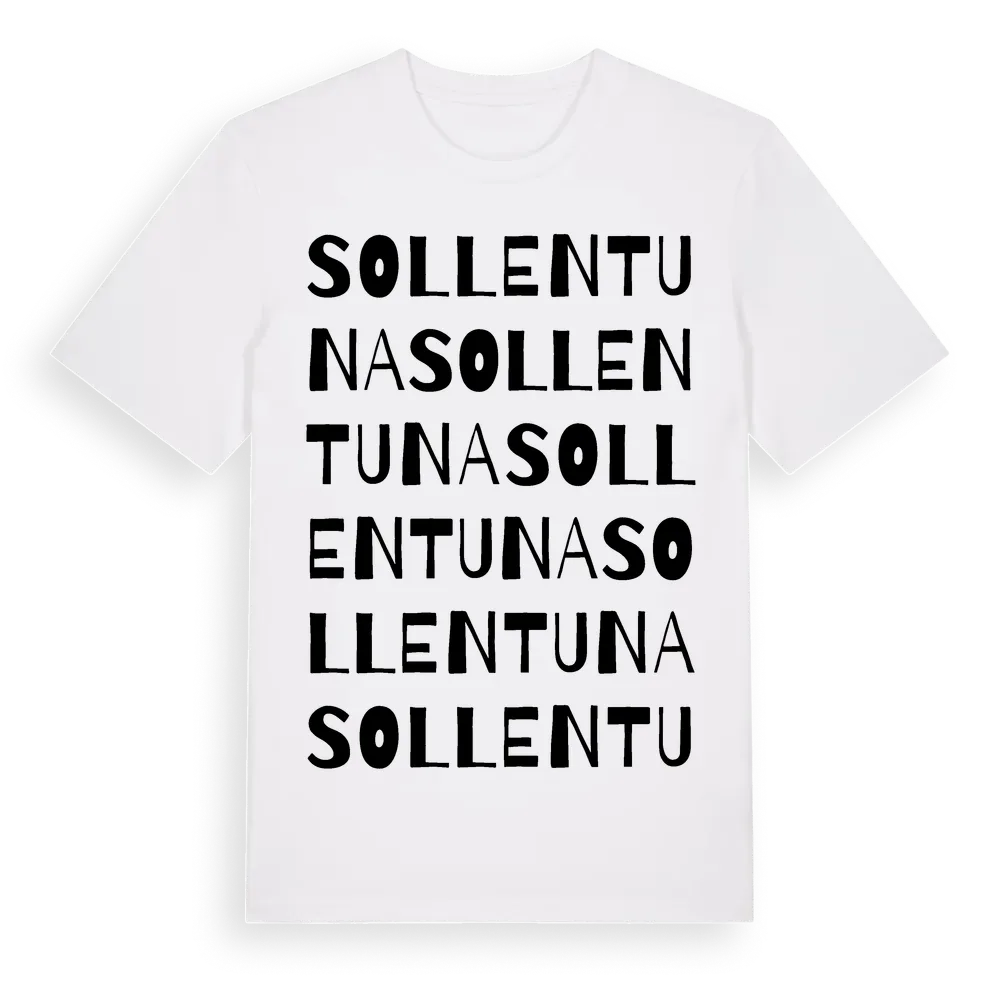 En ordlek byggd på Sollentunas namn. Subtilt och klurig – ett motiv som bara de som verkligen känner platsen fullt ut förstår. Premium bomull, unisex – från staden Sollentuna i Stockholms län.