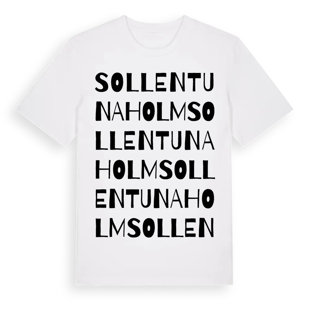 Sollentunaholm ordlek t-shirt är inspirerad av Sollentunaholm i Stockholms län, Sverige. Tröjan är designad för dig som har en speciell koppling till platsen – oavsett om du bor här, har rötterna här eller bara älskar Sollentunaholm.