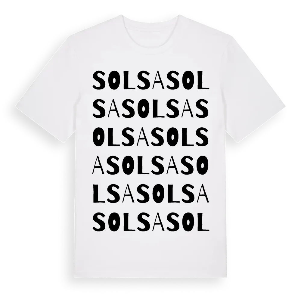 Solsa ordlek t-shirt är inspirerad av byn Solsa i Stockholms län, Sverige. Tröjan är designad för dig som har en speciell koppling till platsen – oavsett om du bor här, har rötterna här eller bara älskar Solsa.