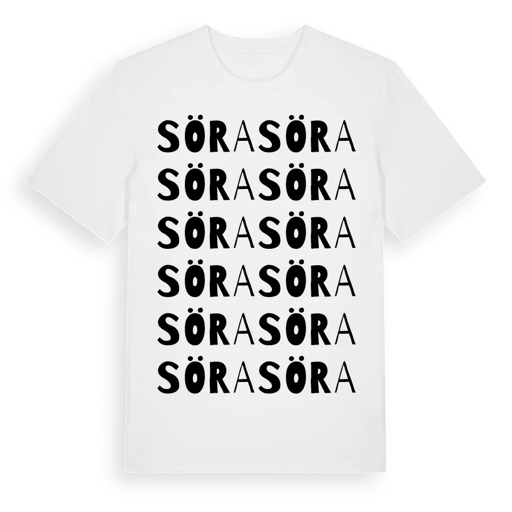 En ordlek byggd på Söras namn. Subtilt och klurig – ett motiv som bara de som verkligen känner platsen fullt ut förstår. Premium bomull, unisex – från stadsdelen Söra i Stockholms län.