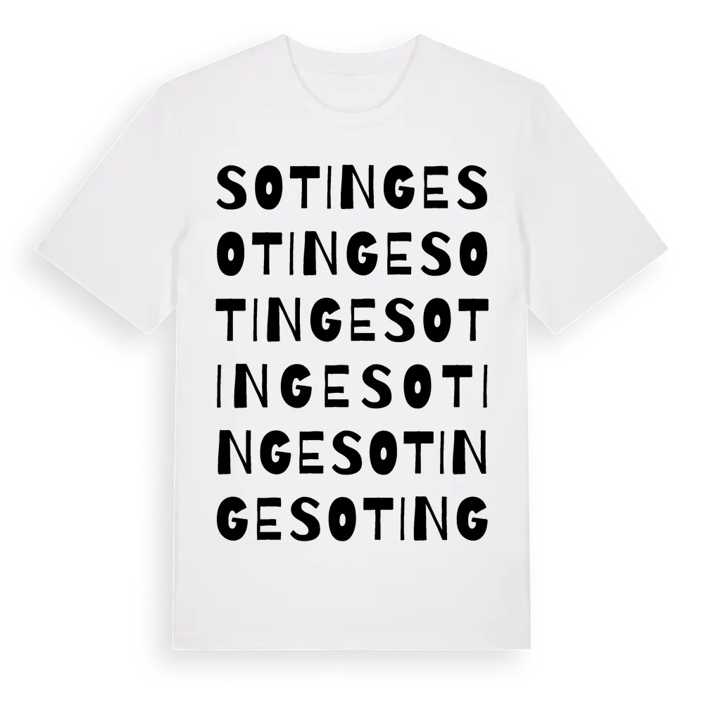 En ordlek byggd på Sotinges namn. Subtilt och klurig – ett motiv som bara de som verkligen känner platsen fullt ut förstår. Premium bomull, unisex – från Sotinge i Stockholms län.