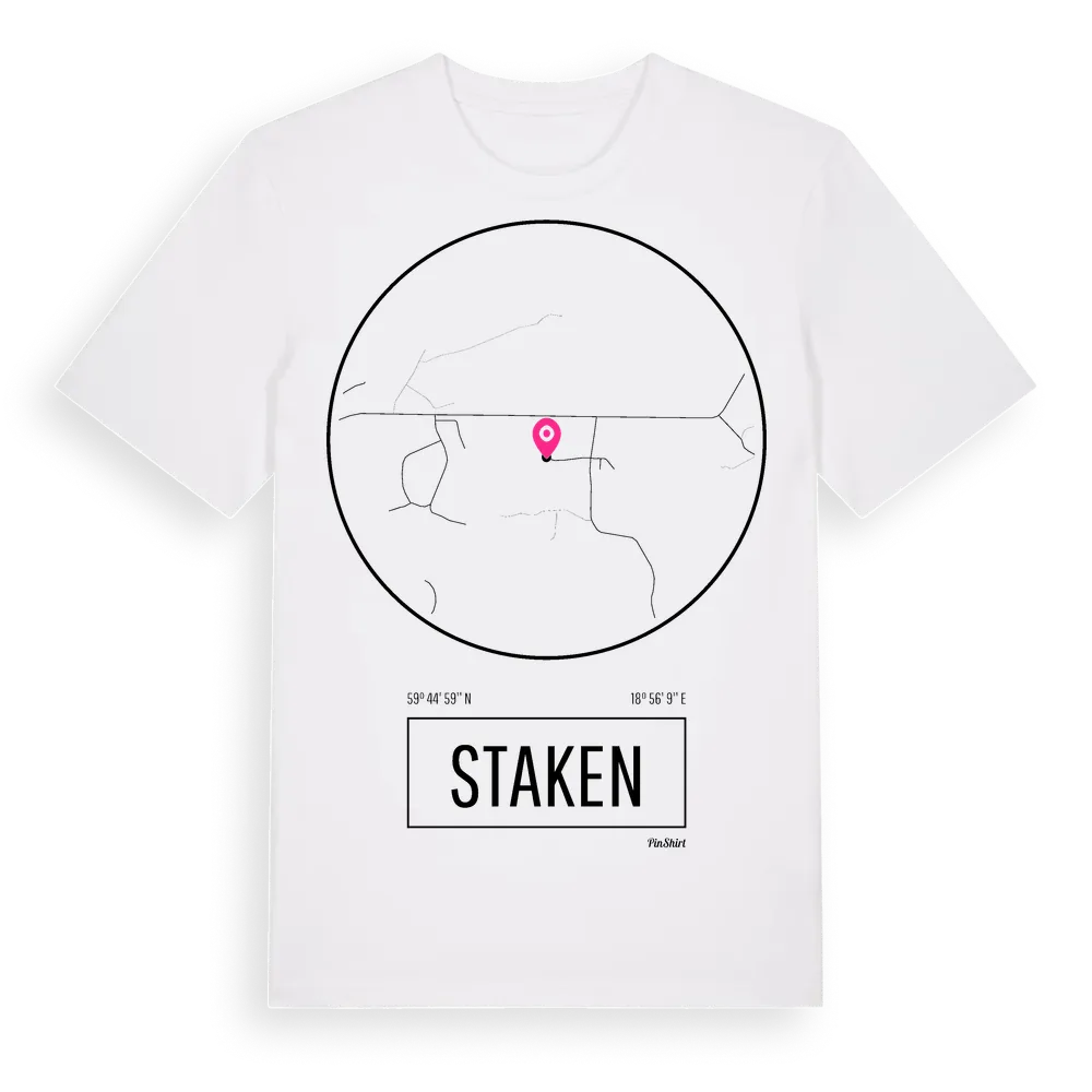 Staken t-shirt är inspirerad av stadsdelen Staken i Stockholms län, Sverige. Tröjan är designad för dig som har en speciell koppling till platsen – oavsett om du bor här, har rötterna här eller bara älskar Staken.