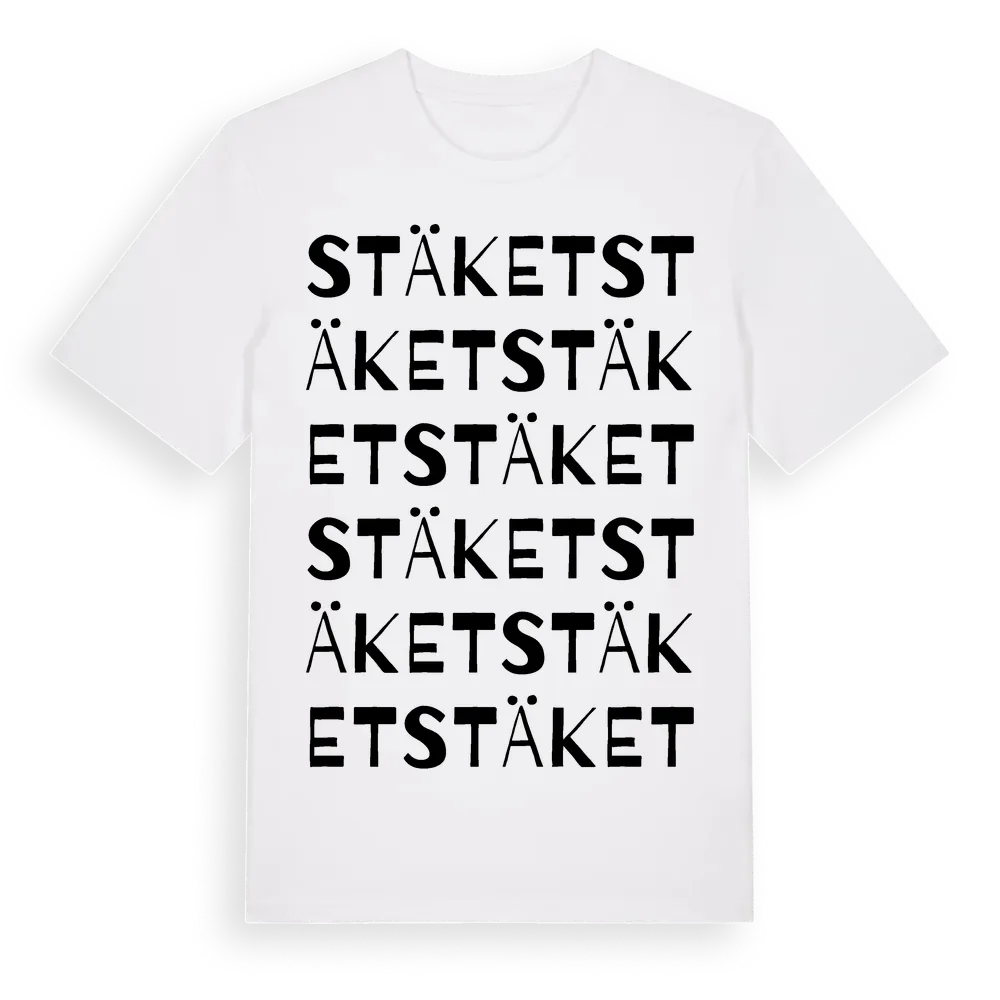En ordlek byggd på Stäkets namn. Subtilt och klurig – ett motiv som bara de som verkligen känner platsen fullt ut förstår. Premium bomull, unisex – från Stäket i Stockholms län.