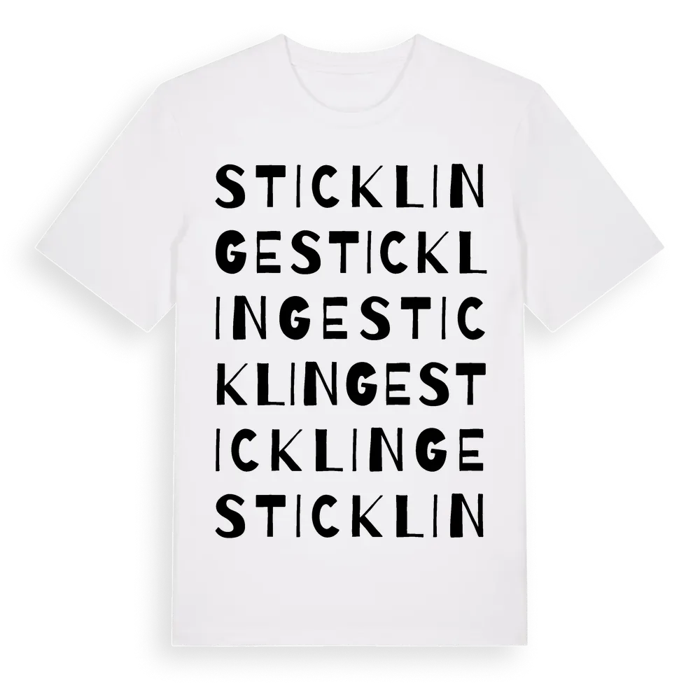 En ordlek byggd på Sticklinges namn. Subtilt och klurig – ett motiv som bara de som verkligen känner platsen fullt ut förstår. Premium bomull, unisex – från stadsdelen Sticklinge i Stockholms län.